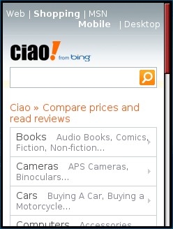 Ciao! from Bing m.ciao.co.uk UK price comparison and shopping site. Registered users can review products and rate other user’s reviews.