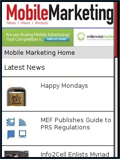 Mobile Marketing m.mobilemarketingmagazine.co.uk The mobile edition of Mobile Marketing magazine has the full text and mobile optimized images from items on the magazine’s full site. Coverage includes mobile marketing news, analysis and interviews. The site also tracks and reports on current mobile campaigns by leading brands. The attractive cross platform mobile site is by bemoko.