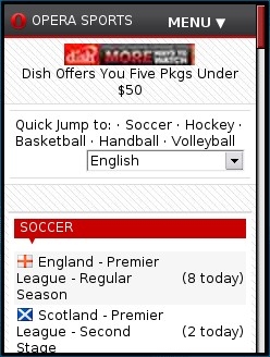 Opera Sports sports.opera.com Opera Software’s mobile sports portal is a default bookmark in Opera Mini and also works with other mobile browsers. The site covers Men’s and Women’s Soccer football and seasonal sports including hockey, basketball, handball and volleyball. Content includes scores, league standings, team and player stats and sports news.