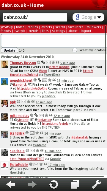 Dabr at 100% Zoom Published November 24, 2010 at 360 × 640 in New Opera Mobile 10.1 Is Fast and (Mostly) Stable On the N8
