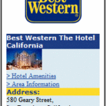 BestWestern.com detects mobile browsers and redirects to a mobile site where you can find and book hotels in the Best Western chain, which operates in the United States, Canada and Australia. Like just about every mobile hotel booking site I’ve every seen, this one has some pretty horrendous usability problems. Things start fairly well with a search form where you enter the city and dates you want to book and then choose the state and country from a drop down. … Continue reading