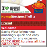 The I Love Mobile Web Awards were handed out at last month’s Mobile Web Europe Conference in London. The awards were sponsored by dotMobi and were judged by a panel of industry representatives. I generally agree with the panels choices, many of the winners were sites I’ve review favorably in the past including APNews, MocoSpace, Taptu, Kizoom and Zagat. One winner that was new to me was Sasko Flour (saskoflour.mobi). It’s a recipe site from South African flour miller Sasko … Continue reading