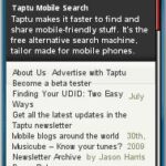 Taptu is one of my favorite mobile search engines. I’ve blogged about Taptu‘s mobile search product and it is listed in the Wap Review Mobile Directory’s Web Search section. But did you know that Taptu also has a blog? Unlike so many boring promotional corporate blogs, Taptu’s actually has content of interest to mobile developers, entrepreneurs and enthusiasts. Posts cover a wide range of topics from analysis of industry news like the recent Yahoo, Microsoft search deal, mobile design and … Continue reading